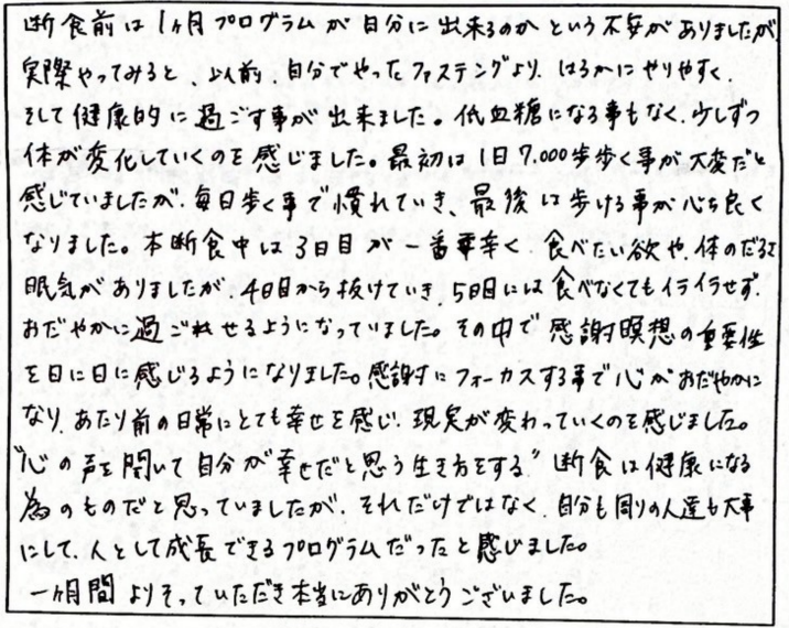 天澤断食クリニックのメソッドは、個人に合わせたアプローチで、無理なく、安心して行うことができるため、断食初心者でも安心です。マンツーマンでサポートを提供するため、オンラインでの指導も実施しており、どこにいても質の高いサポートを受けることができます。