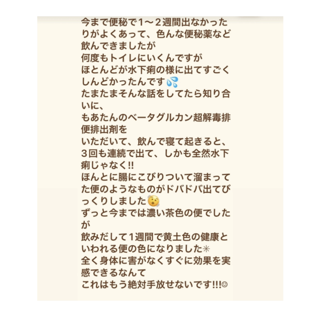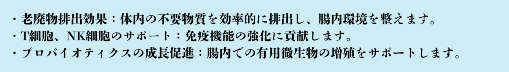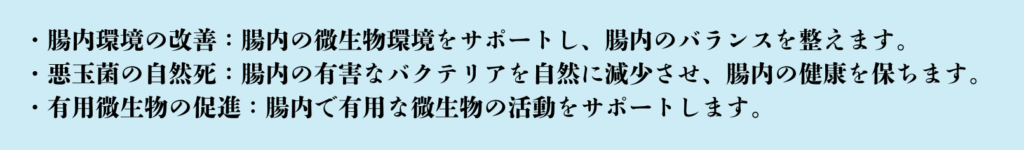 私たちのベータグルカン超解毒排便排出剤は、腸内環境の改善を目指した作品です。腸内の悪玉菌を整え、腸内フローラのバランスを整えることができます。これにより、腸内の微生物環境が変化し、健康的な消化器官の維持をサポートします。