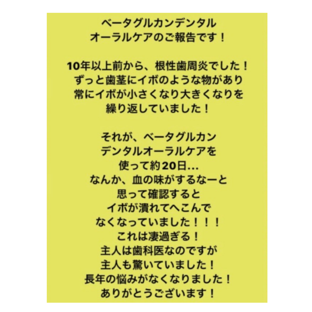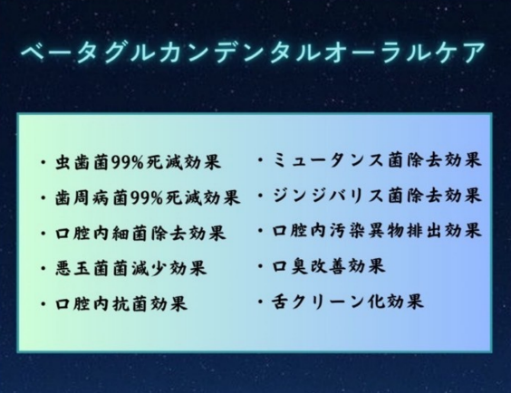 ベータグルカンデンタルオーラルケアは、虫歯菌の99%を死滅させ、歯周病菌も99%死滅させる効果があると言われています(効果には個人差があります)。